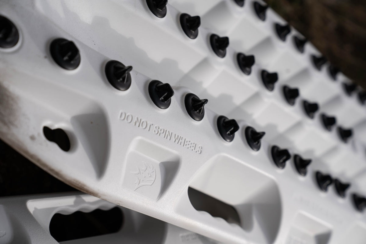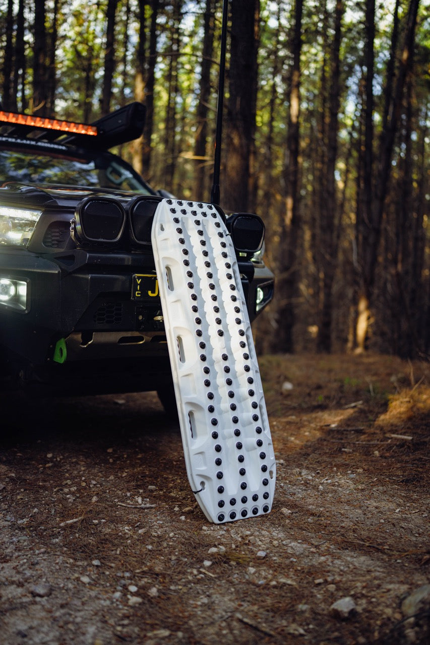 Designed, engineered and manufactured in Australia, it features six glove-friendly handles, a 9 kg weight per pair, a lifetime warranty and comes with two recovery tracks, orange telltale leashes, and a Ghost White finish (actual colour may vary slightly)